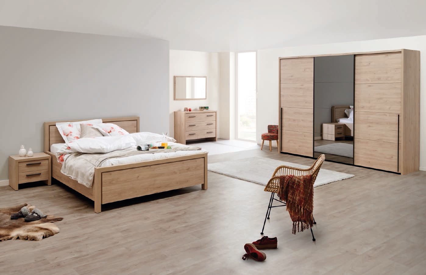 La chambre Udine propose un ensemble élégant au style contemporain, mettant en valeur un décor bois chaleureux qui crée une atmosphère douce et apaisante. La collection comprend un lit, des chevets, une commode et une armoire, offrant des solutions de rangement pratiques tout en conservant une esthétique harmonieuse. Chaque élément peut être commandé séparément afin de composer la chambre selon vos besoins et votre espace.