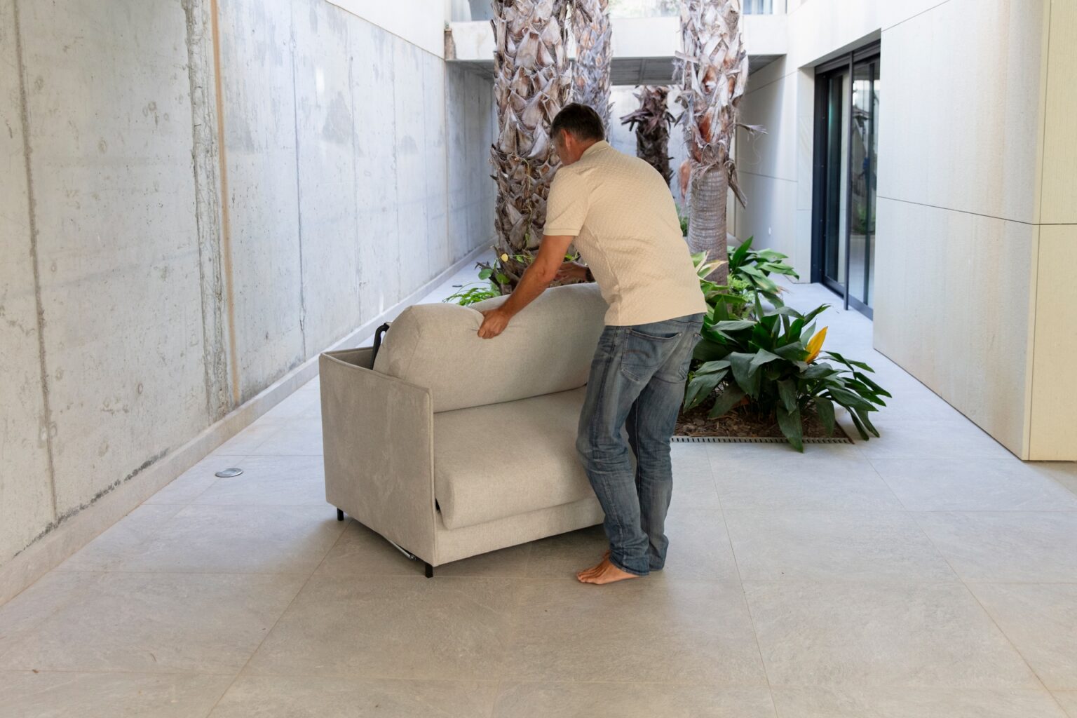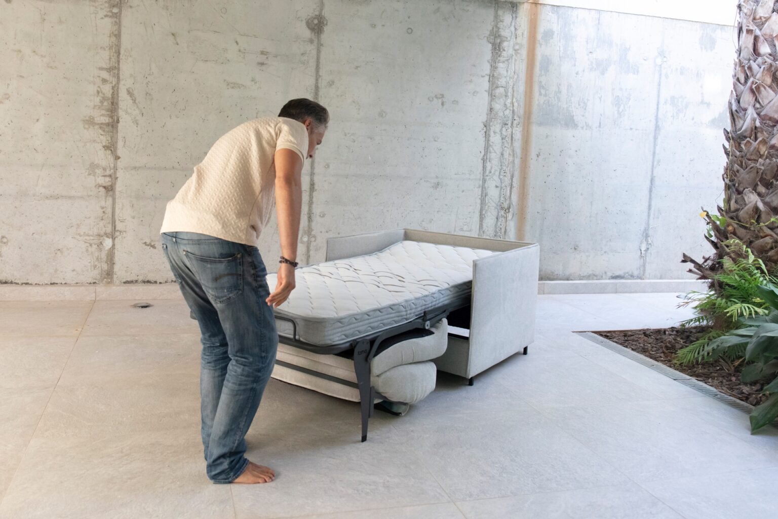 Disponible en version fauteuil ou canapé, il peut accueillir un matelas de 80 ou 140 cm de largeur et 14 cm d’épaisseur, assurant un couchage confortable pour les invités. Il peut également être configuré avec ou sans accoudoirs et avec différentes hauteurs de pieds, pour s’adapter à l’espace et au style de votre intérieur.